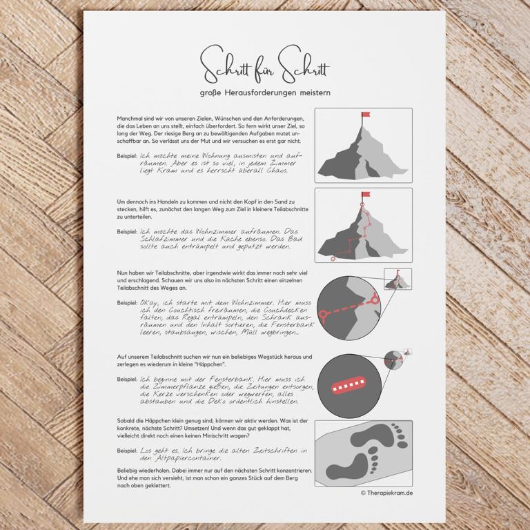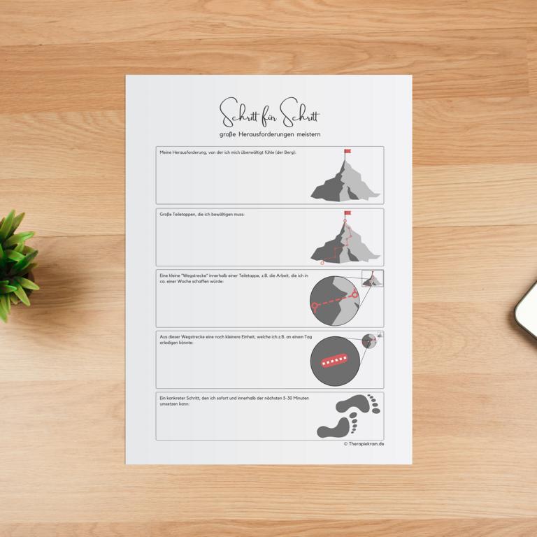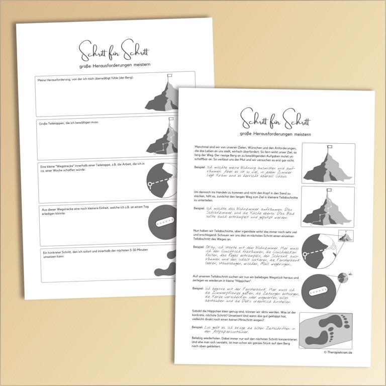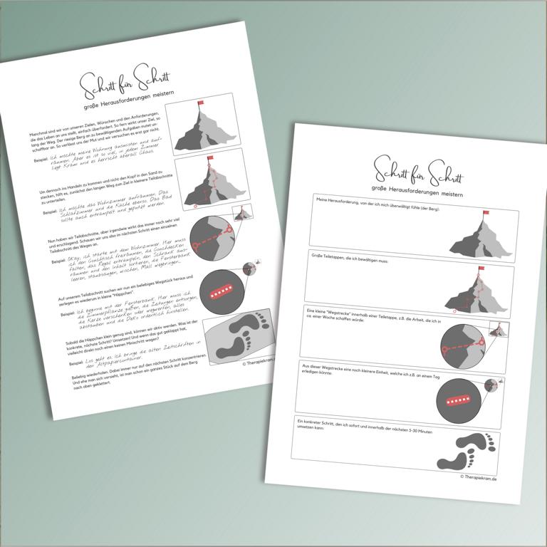 Digitale Datei: Arbeitsblätter zum Thema “Schritt-für-Schritt Herausforderungen überwinden”.