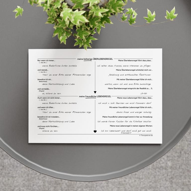 Arbeitsblatt “(Über-)Lebensregel” mit Ausfüllhilfe