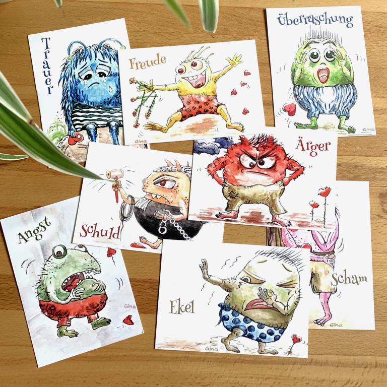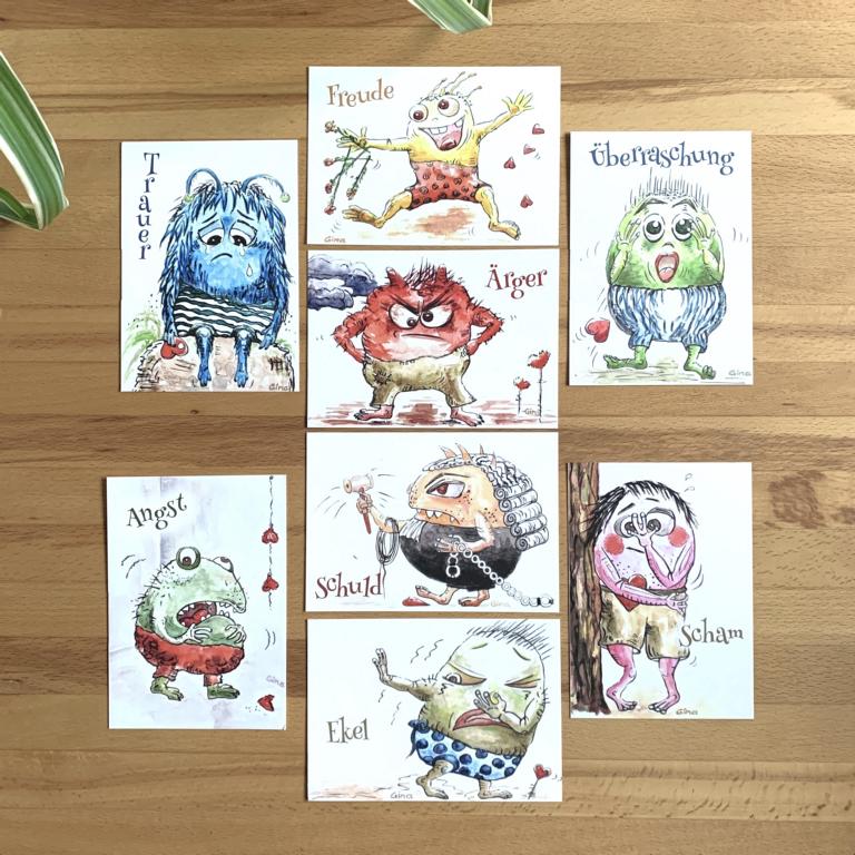 Postkarten mit den Gefühlemonstern als Motiv